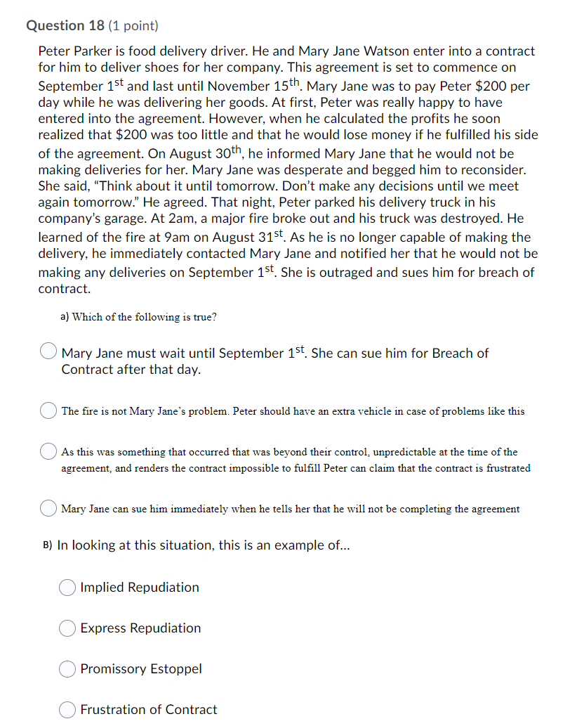 Solved Question 18 1 Point Peter Parker Is Food Deliver Chegg Com : Seasoned Delivery Driver Adept At Delivering Shipments Safely While Meeting Tight.