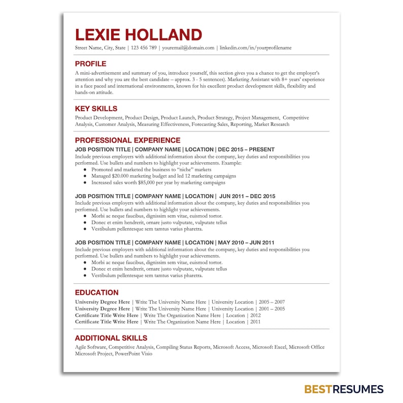 Professional Ats Resume Templates For Experienced Hires And College Students Or Grads For Free Updated For 2020 . Your Name Can Be Given In The Header Followed By Your Dream Job Title.