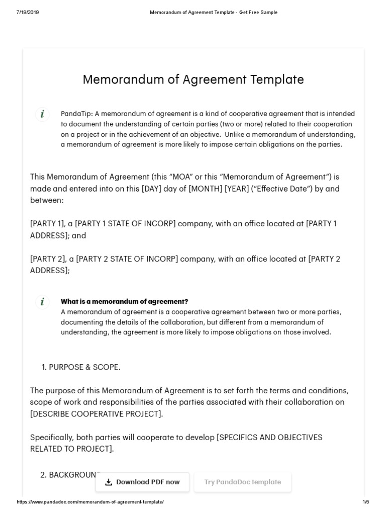Download sample memorandum of agreement.