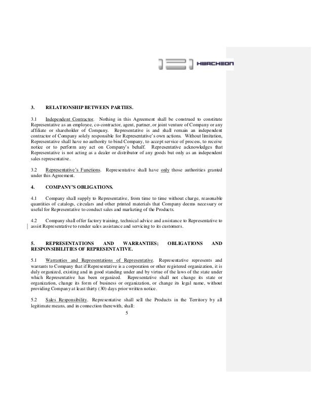 Manufacturers Rep Agreement Template Exclusivity And Territory See Sales Representative Agreement Template Free International Sales Representative Agreement Free Template. Sales agent agreement formats are available on the internet. Adapt this agency agreement template to hire an agent to market or sell your good or service. What's an exclusive sales representative agreement? You may choose the type of agreement you need and all. Exclusive agents can be given sales targets by the principal in the event that they would like to continue doing business together or to ensure that they are able to retain their exclusive status with the principal. This sales representative agreement template has 2 pages and is a ms word file type listed under our human resources documents. International sales representative agreement template. The agent shall be the exclusive party authorized to market the product within the territory. How to create/write sales agency agreement. Dates be clear about the initial duration of this agreement, as well as plans for renewal. A sales representative is a salesman who represents a company and its products to people i.e. Customize and download a sales representative agreement template to get your sales rep started on the right foot. We have the sales agency agreement available for download. The company shall pay to the agent percentage of all net product sales directly from the agent's efforts. The benefits an agency agreement template can offer numerous benefits, especially for being a representative of the principal, the agent can enter into a contract without the knowledge of the the agency agreement template defines certain important characteristics of the agreement that will exist.