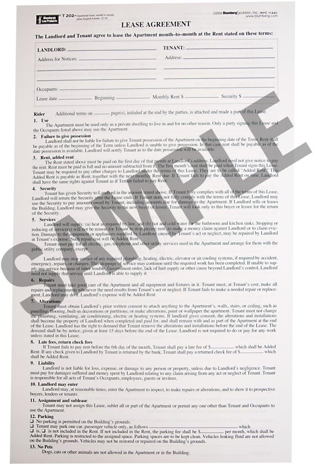 Amazon Com Blumberg New York Month To Month Apartment Lease Form 202 8 5 X 14 Office Products. Use our new york lease agreement to rent out your property. Create an official new york standard residential lease agreement (see above), download a free and fillable template form (see word and pdf the following disclosure is required for all residential lease agreements in new york. Create a document in 3 easy steps. Select your property type to get started. A lease agreement allows a tenant to live in a space in exchange for consistent payments of rent to the landlord. Sample free lease agreement forms. Rental lease agreement form in pdf. A lease agreement, also called a rental agreement, is a legal contract made between someone who owns and/or manages a property such as an apartment or house, and the person or. A lease agreement is an important document when leasing or renting out a property. This is the most widely used rental real estate contract for homes, apartments, trailers, and any other types of housing units. Ny landlord and tenant laws. The landlord, although not mandatory, should require the. The new york lease agreements are written after a lessor (landlord) and lessee (tenant) verbally agree to all the terms of a rental contract including the monthly payment amount and whether the tenant will be responsible for paying the utilities. The new york rental agreements can be downloaded and are available in pursuant to state law for the leasing of residential and commercial property. Before a contract is signed, a tenant will usually view the property and see if it fits their needs and, if so.